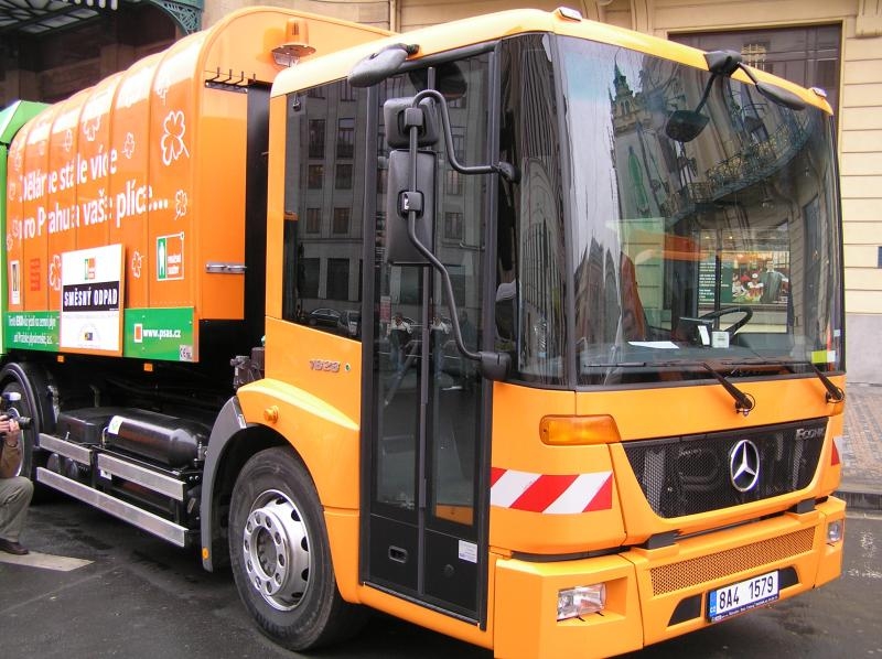 Tři nové vozy značky Mercedes s pohonem na zemní plyn budou svážet komunální odpad v nejznečištěnějších částech Prahy. Vozidla veřejnosti představila společnost Pražské služby. „Automobily budou svážet odpad hlavně v centru města, v první a sedmé městské části, pro maximální využití budou fungovat ve směnném provozu,“ uvedl pražský radní Petr Štěpánek.